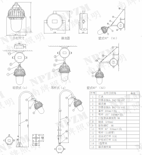 南牌照明部分产品型号: