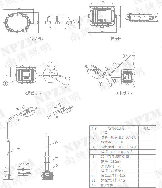 南牌照明部分产品型号: