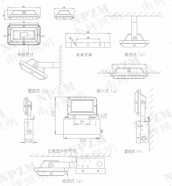 南牌照明部分产品型号: