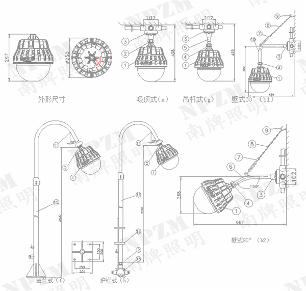 南牌照明部分产品型号: