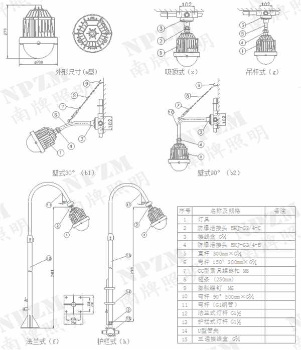 南牌照明部分产品型号: