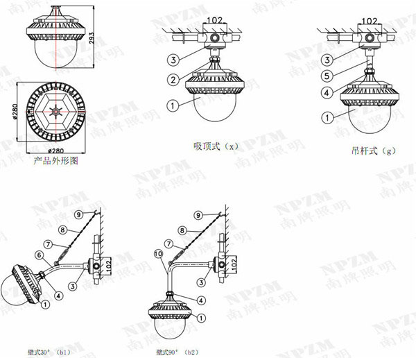 南牌照明部分产品型号: