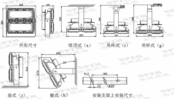 五、NTC9710 LED泛光灯安装方式: