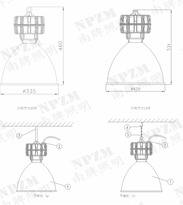 6. 根据安装的高度或对现场照度要求的不同,可选配镜面反光罩或砂面反光罩;