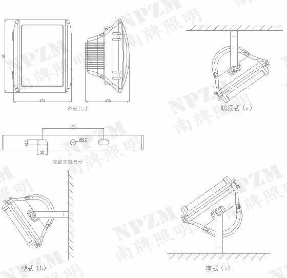 8. 座式、吸顶式和壁挂式等多种安装方式,照射角度可根据环境需要在上下180°大范围内调节。